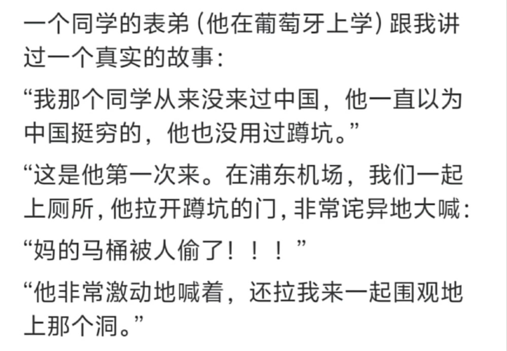 国外的人好像不会用蹲坑,蹲不下去,不知道真的假的(道听途说)