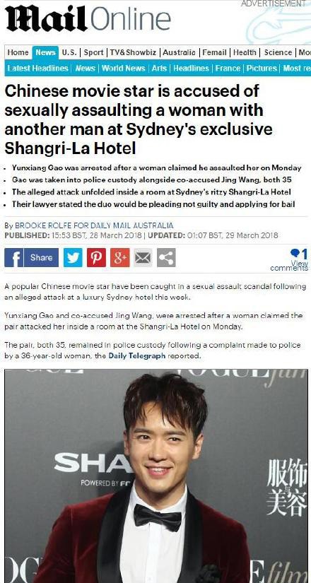 今日,网上突然爆出在外媒报道上,中国男演员高云翔在悉尼一家香格里拉酒店内涉嫌因性侵被捕。女子报警称她和高云翔以及另一名叫王晶的男子进入酒店房间内,两人对自己实施了性侵。有网友猜测:王晶是不是著名导演的那个王晶?小编觉得这不大可能吧,著名王晶和涉嫌的那个王晶所报道出来的年龄似乎差别很大啊!
