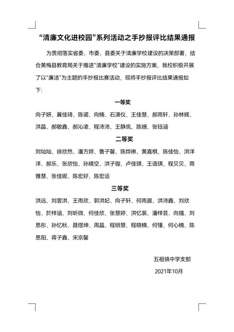 黄梅思源实验学校开展“清廉文化进校园”手抄报评比活动