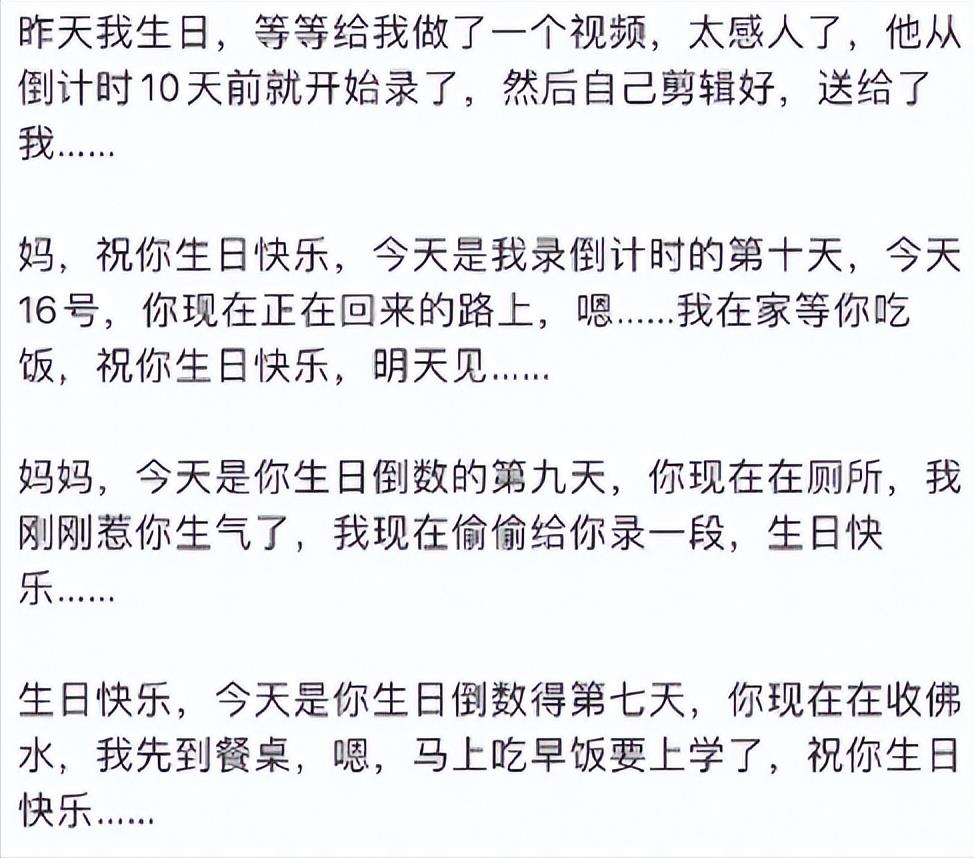 和小花礼物的用心比起来儿子等等的礼物就显得更加用心了,孙俪说等等是给她做了一个视频,孙俪在社交平台晒出来的是等等的脚本。