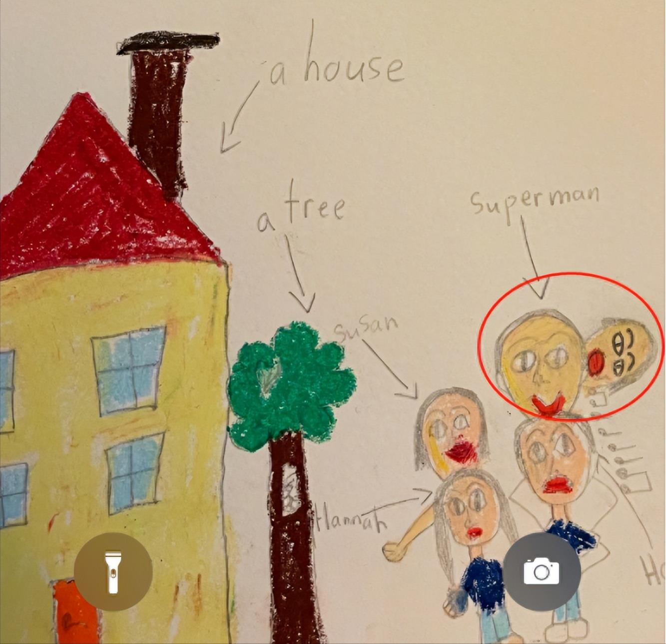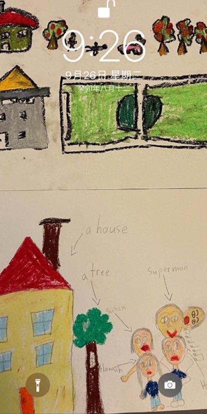 除了超哥与网友的这些活宝发言外,超哥晒出的卡点截图的屏保也被网友们注意到了,画中不难看出是邓超一家四口,有房子、有树,还有四个小人,都贴心的用英文标注上了,不知道是不是等等的作品。