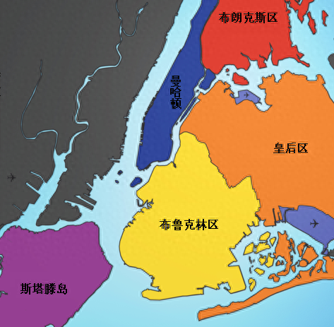 纽约市行政区划纽约市是由五个区组成,从另一个行政角度划分的话,市下又分五个郡