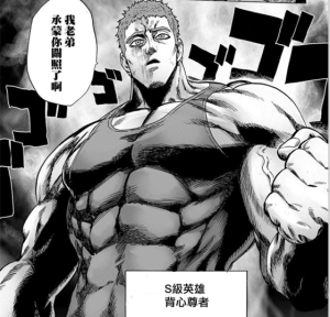 英雄协会的S级英雄实力也是不断的进步的,当饿狼篇结束后,能不能够和龙级对抗已经是评判是否有实力的一个巨大因素。甚至杰诺斯换上了“雷光核”都有了和龙级对抗的能力,而且他还是S级英雄片面靠后的,那么可以认为比杰诺斯弱的基本就可以看成S级的最后排位者了!他们就是背心尊者、金属棒球、和性感囚犯,当然还有一个实力很弱的也可以讨论一下,那就是KING!
