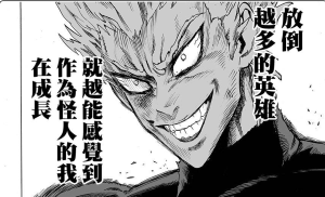 第二,英雄意志不强。S级英雄基本都是单独行动的,只有背心是拉着一群小弟到处跑的。看上去是保护小弟,其实不过是内心虚荣的表现!当然,他作为英雄还是做到了很多英雄方面的事情,不过就如同无证骑士说的一样!“你们就不觉得羞耻吗?明明身为S级英雄,却对小混混的对手,痛下杀手什么的!身份已经很明显了!他已经受伤得连站也站不稳了!”他在英雄操守方面确实不够,不说他做错了,至少还是说明他的心态并不是强者的心态!