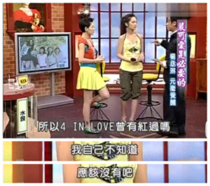 2005年,杨丞琳去到《康熙来了》那个节目时,主持人让她唱首“4 in love”的歌,她竟然想了好久都没想起来一首歌。