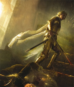 “他也许会动手也许不会,”据说泰温·兰尼斯特如此回答,“如果他动手,我们会有一位更好的国王。”公爵说着指向雷加王子。