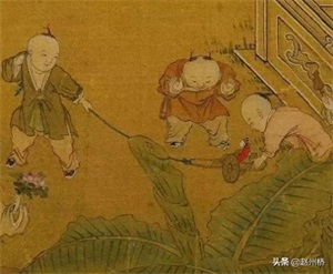 百子图里面有一百个天真烂漫的孩童,进行各种各样的玩耍,拨浪鼓,放风筝,玩模具(积木),爬树,捉鸟,骑马打仗……