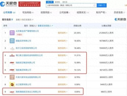 券商中国在一份《债权转让及服务协议》上发现,该协议涉及的标的实际上是大新华物流控股(集团)有限公司的债权。而根据天眼查数据,大新华物流的股东名单中,海口美兰机场、海航航空、海航集团、海航航空进出口等海航系企业在赫然在列。