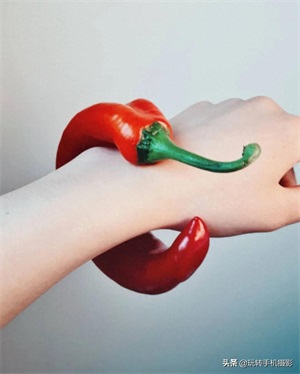 如,将弯曲的小红椒变成手环,这画风也是蛮有意思滴~