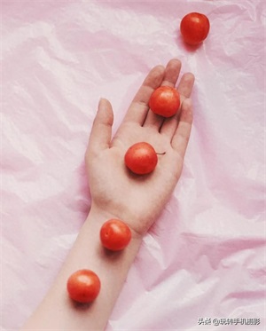 在拍手时,我们还能将大小相近的同种小水果进行有序排列、堆叠,借以色彩点睛、制造画面秩序,增添手部拍摄的趣味性及可观赏性,要记得适当的画面留白哦~