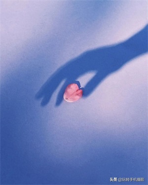 有时,巧妙地融入小道具,如花瓣、水果等,让手的影子做出与之互动的情节,这些戏剧性的画面更是丰富了人的空间想象,一缕光影,一段情愫~(ps:由于是拍影子,合拢的手指并不能体现手的纤细、灵活,所以拍时要留意手指的张开程度哦~)