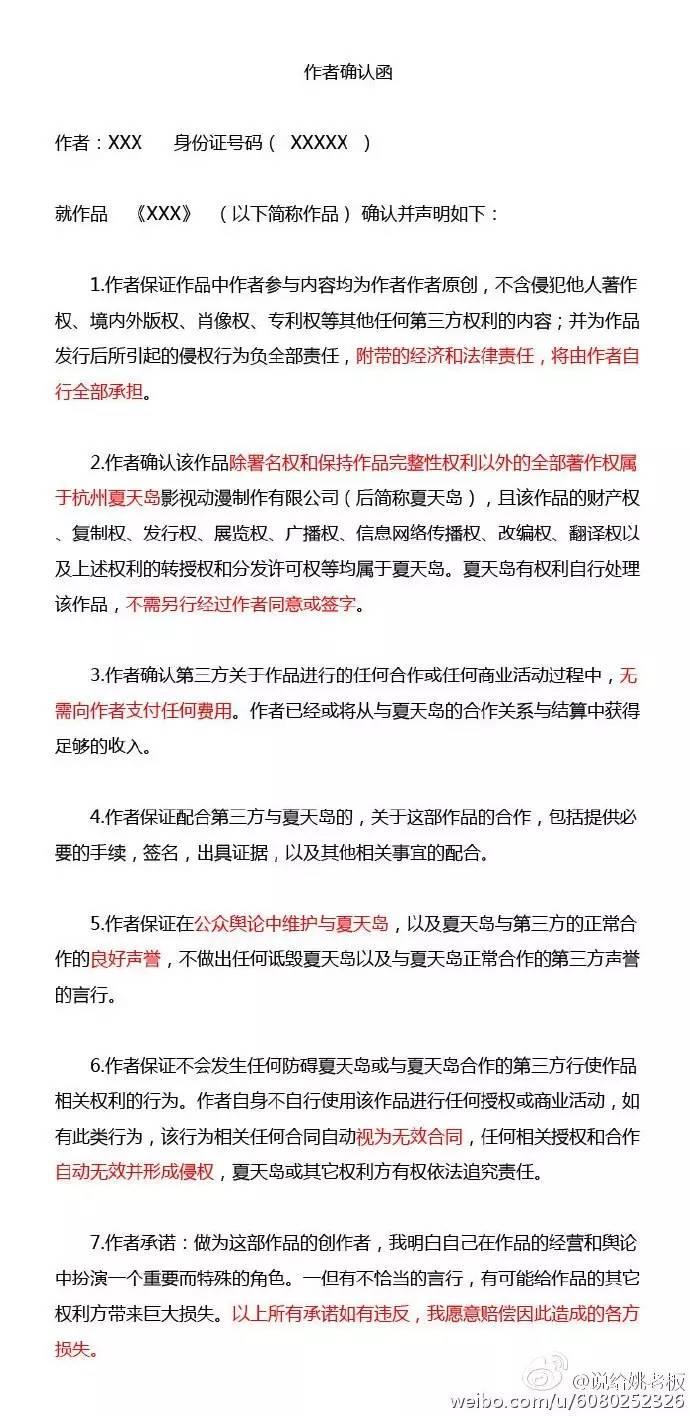 3,作为一家漫画经纪公司,夏天岛的合作协议对作者们极其苛刻。