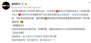 在《复仇者联盟4》宣发阶段时,漫威影业可以真正在中国好好办一次回馈粉丝的嘉年华,就类似迷迪音乐节/圣地亚哥动漫展,那种上万人的售票大场子。