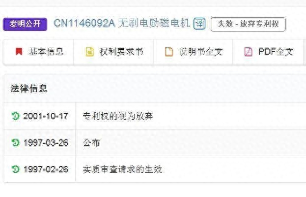 前文所述李洪涛的专利“无刷电机 CN95115186.X,经过检索发现其根本就没有授权,根本就不存在有网友所说的李洪涛的专利获得“中国专利发明博览会”这一说法,该申请95月9月19日提交,1997-03-26公开,不可能获得95年的所谓的第五届中国专利发明博览会金奖,而且该申请也未获得过专利权,也不能被称为专利,只能称之为专利申请。先不论“中国专利发明博览会”这一展览会存不存在,是人就知道没授权的专利,怎么拿到博览会上去展览?更不要说传说的李洪涛为了社会技术的进步,主动将该专利放弃掉,要想放弃专利,你首先要获得专利权啊,没有获得专利权的专利,宣布主动放弃有啥意思。