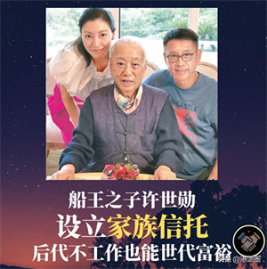 许世勋家族是老牌富豪家族,他的爸爸许爱周是香港第一代船王。这种老钱家族的资产都是个谜,据说他们家资产在2006年时已经超过了200亿港币。