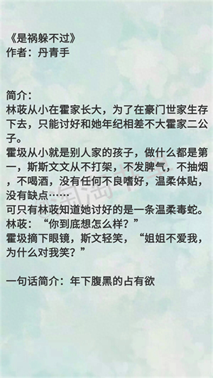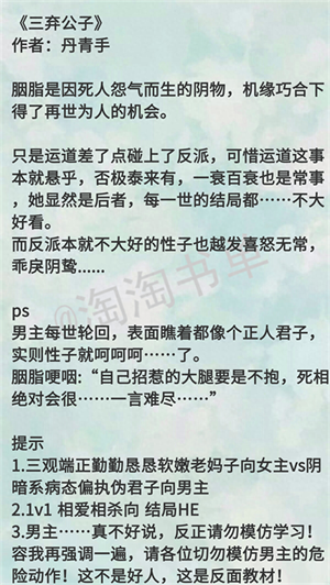 还是佩服作者,这本书,人设情节方面大概都能猜的出来,但写得就是让人忍不住一点点想看下去,作者大大的书,男主的人设大多都是这种病娇腹黑霸道偏执系列,《三弃公子》《公子,求你莫寻死》《公子强娶》 这几本都是这种,也推荐呀~