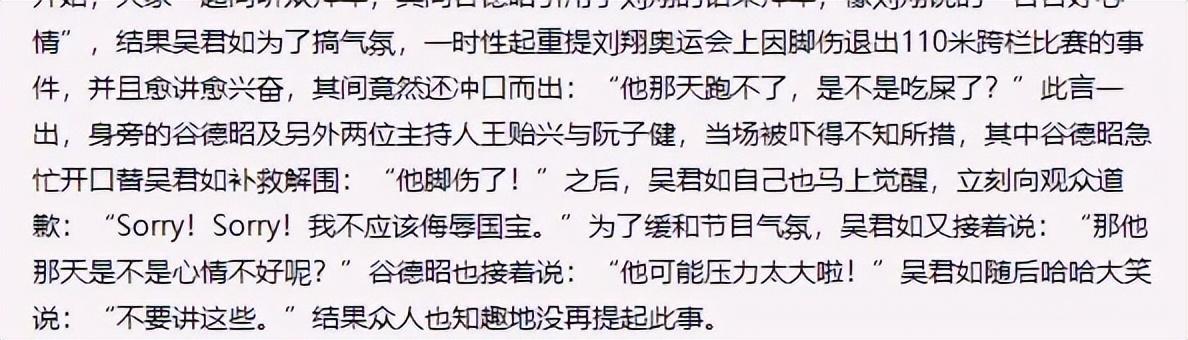 2009年,吴君如突然对刘翔奥运退赛一事开炮: