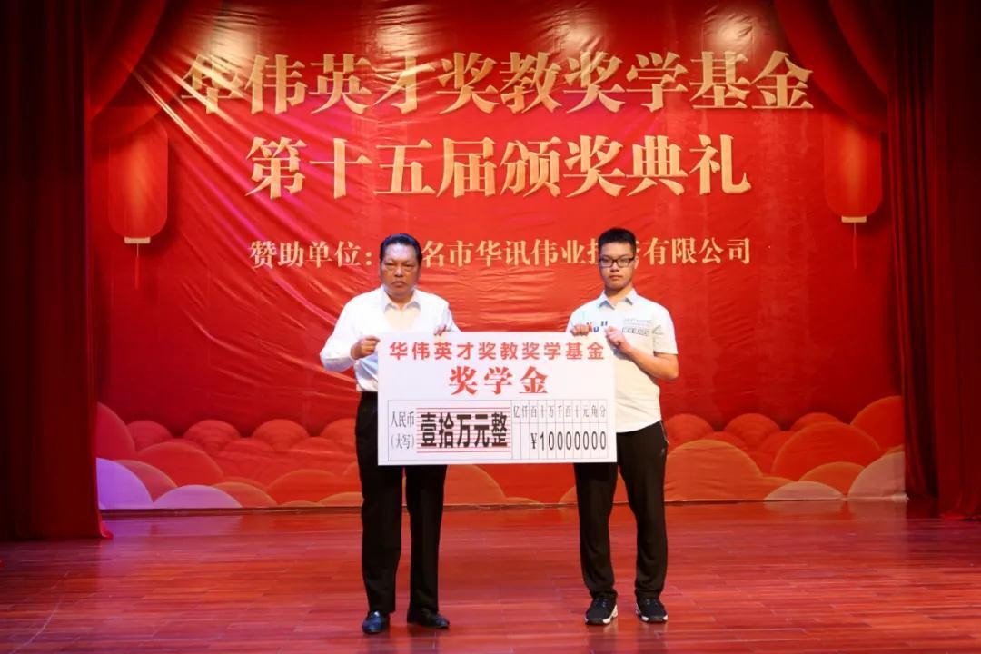 作为华伟英才奖教奖学基金的创始人,深圳华讯伟业集团公司董事长陈华伟也在会上分享了自己多年捐资助学的心得体会。陈华伟董事长认为,只有教育事业的不断壮大,才能培养出更多的人才,才能让家乡得到更好的发展。如果一个地方不重视教育,后果将不堪设想。因此,为了激发广大师生在以后的高考中,考出更好的成绩,陈华伟董事长现场宣布,从今年起,凡是高考考上清华大学、北京大学的学子,每人重奖20万元,学校团队重奖50万元,高考考进全省前50名的学子,每人重奖100万元!话语一出,全场沸腾,大家备受鼓舞,现场更是响起了一阵阵雷鸣般的掌声。