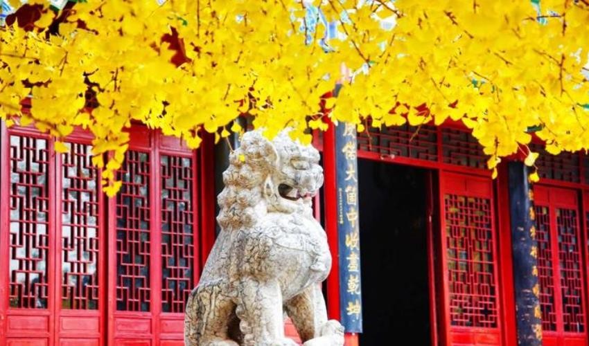 如果你是在合适的季节,就会看到千年古银杏的一片金黄。