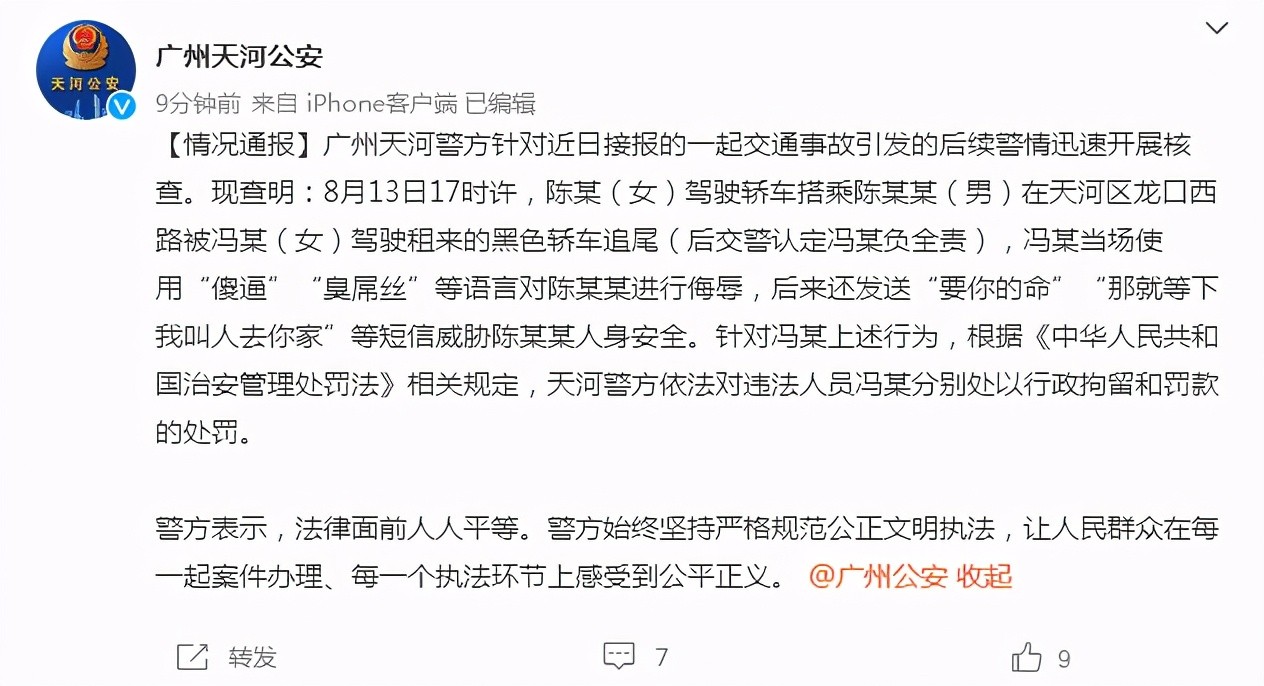 然而就在大家期待着后续能曝光女司机后面关系的时候,警方发布通告,女司机冯某因违反相关规定,被处以行政拘留和罚款的处罚。