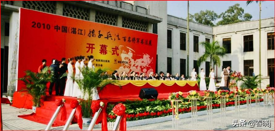 2010年11月26日,2010中国(湛江)揭子兵法百名将军书法展在湛江市博物馆隆重举行,图为周坤仁上将,徐承栋、黄新中将,揭晓大校等领导在开幕式主席台上就座