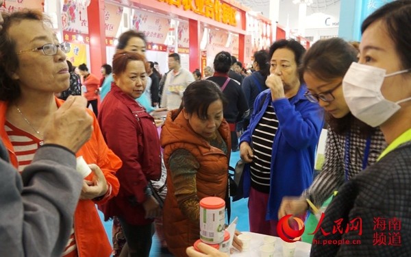 人民网海口12月13日电(符武平)12月12日上午,2018年中国(海南)国际热带农产品冬季交易会(以下称:冬交会)在海南国际会展中心盛大开幕,椰语堂此次参展带来了无色素、香精、防腐剂的罐装椰奶清补凉;老海盐柠檬粉;醇香椰子粉;椰奶脆卷等海南特色伴手礼,吸引了大批消费者驻足争先品尝购买。