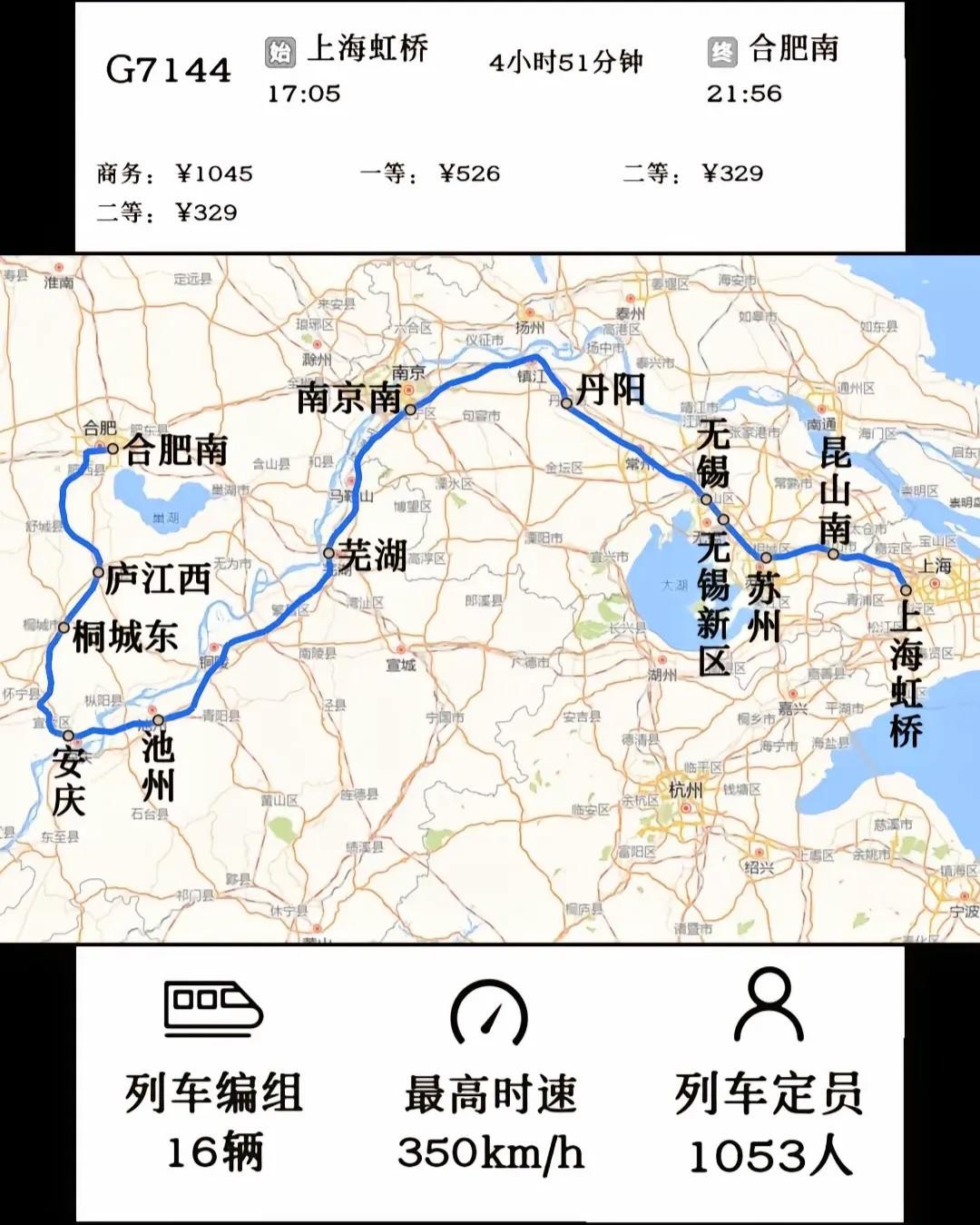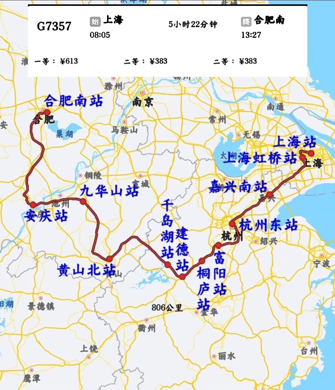 上海到合肥用时最长一趟是走杭州的G7357,不再是走南京的G7144