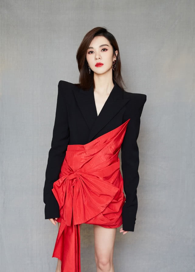 9月8日,歌手郁可唯参加某盛典,身穿红黑色西装裙搭配高跟踝靴亮相,率性洒脱。