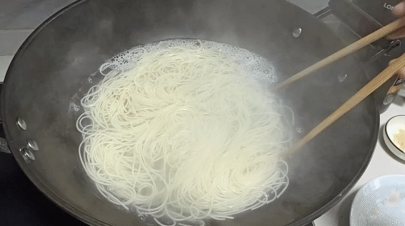 ②水沸后,加入适量挂面,快速搅拌开