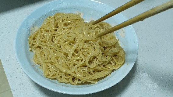 一人食就来一份吧!我迫不及待地炫起了包裹着简简单单的调味料的面条,面条软糯糯的,唇齿间微酸微辣的,又香又入味,还一点儿也不觉得油腻,嗯!我真的很喜欢这个味儿……