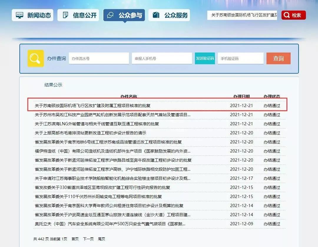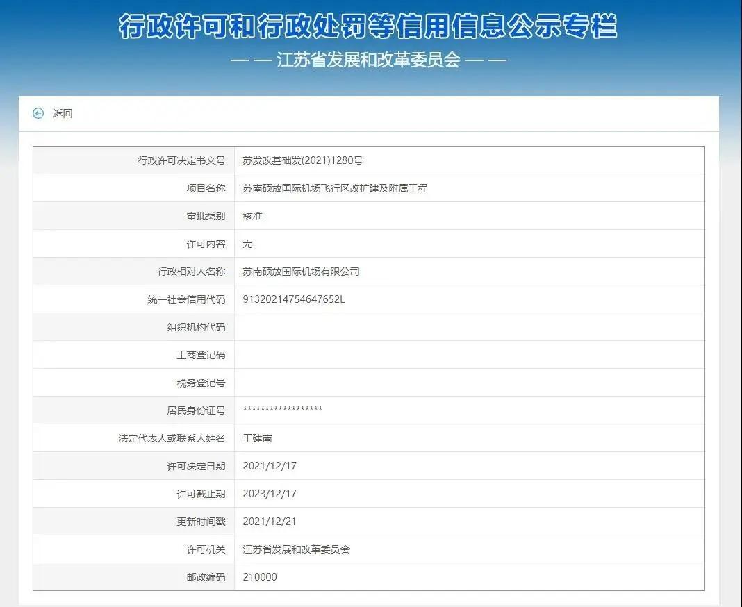 12月21日,省发展和改革委员会官网公布消息,《关于苏南硕放国际机场飞行区改扩建及附属工程项目核准的批复》已办结通过。这标志着,苏南硕放机场飞行区改扩建及附属工程项目获得批复。