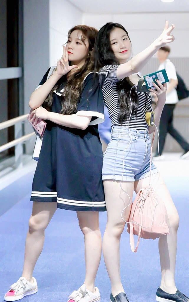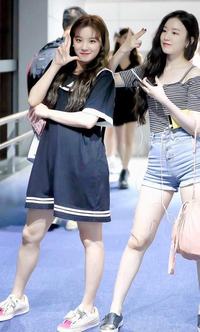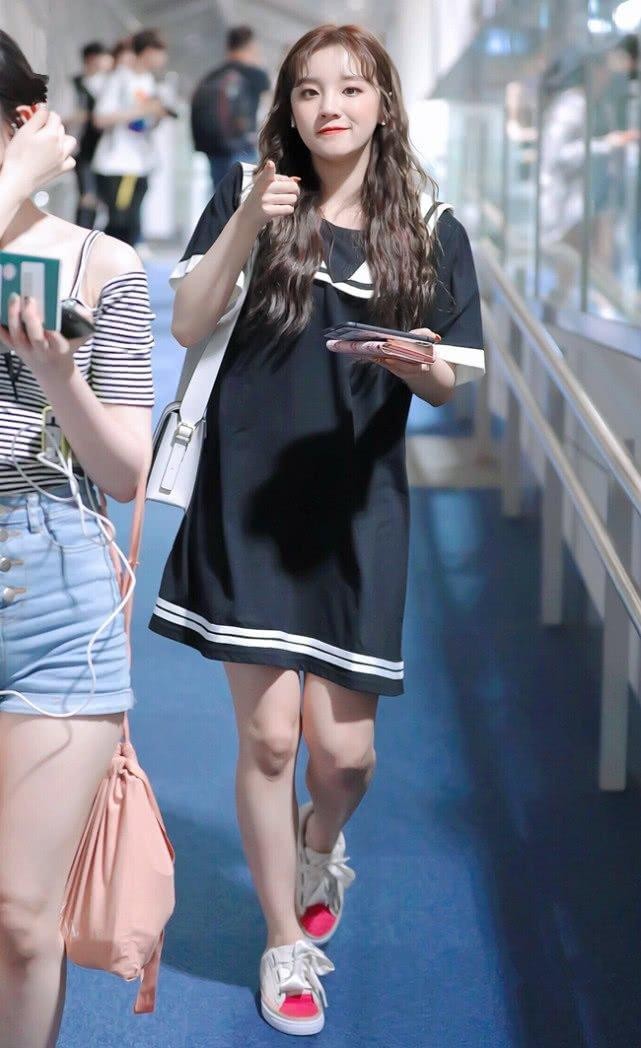 这次宋雨琦亮相机场,一身造型就是小女生风格,看起来特别青春减龄,一件黑色的宽松版型连衣裙,海军领加上条纹元素点缀,尽显校园风,当看到她跟队友叶舒华站在一起的时候,两人的腿瞬间抢镜了,大腿肌肉都很发达,而且看起来腿型都差不多呢!