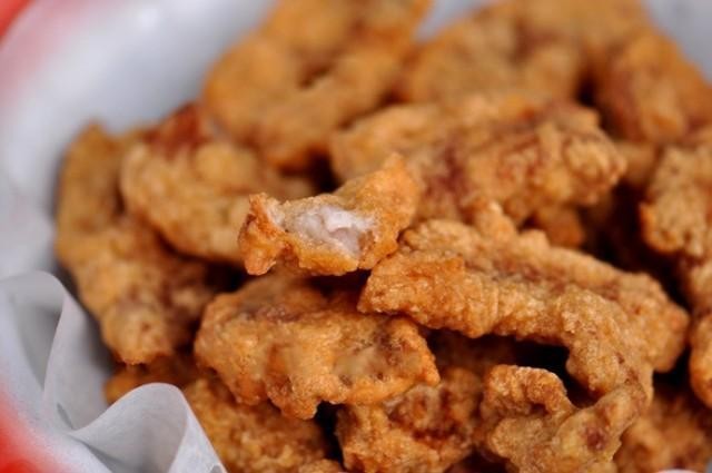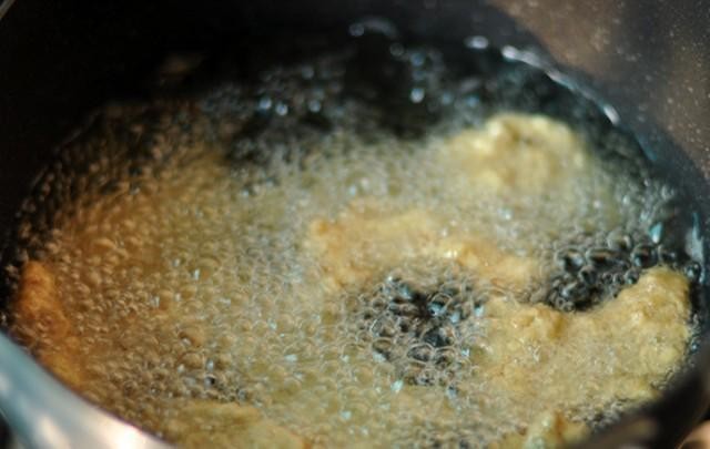 6.炸至颜色金黄捞出。