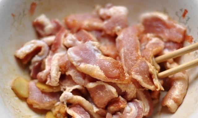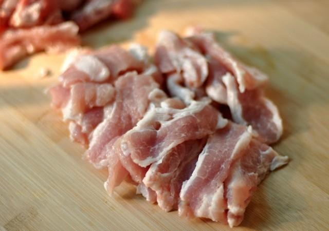 1.肥瘦三七分的猪肉,切成大小差不多的肉片。