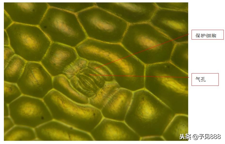 气孔:由一对半月形保卫细胞围城的空腔,存在于叶子的上下表皮,但是下表皮密度高于上表皮.气孔是植物体蒸腾失水的门户,也是植物体与外界进行O2,CO2等气体交换的窗口.气孔的开放和闭合由保卫细胞控制,保卫细胞吸水后气孔张开. 保卫细胞失水后气孔闭合