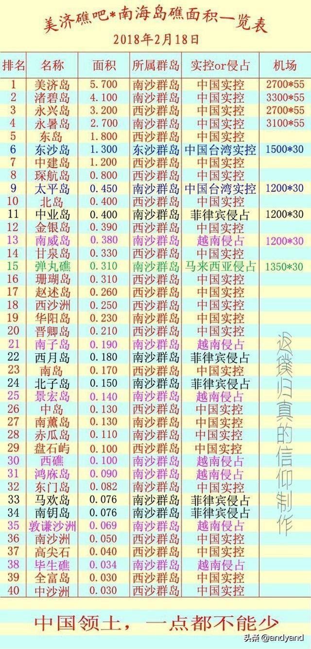以下是从贴吧网友搜集到南海各岛礁各国实际控制图,供大家欣赏