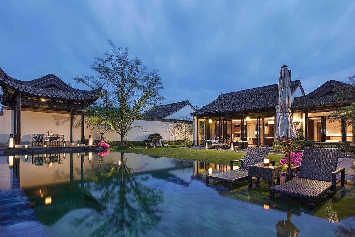 浙江安吉悦榕庄酒店:酒店以中式风格为主,拥有湖景别墅、SPA 中心、室内外泳池等设施
