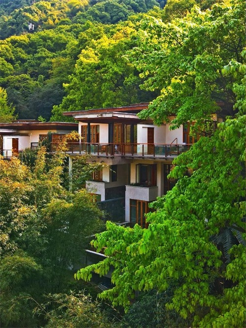 浙江杭州法云安缦:坐落于灵隐寺附近,由古村落改造而成,保留了大量古建筑和传统元素。