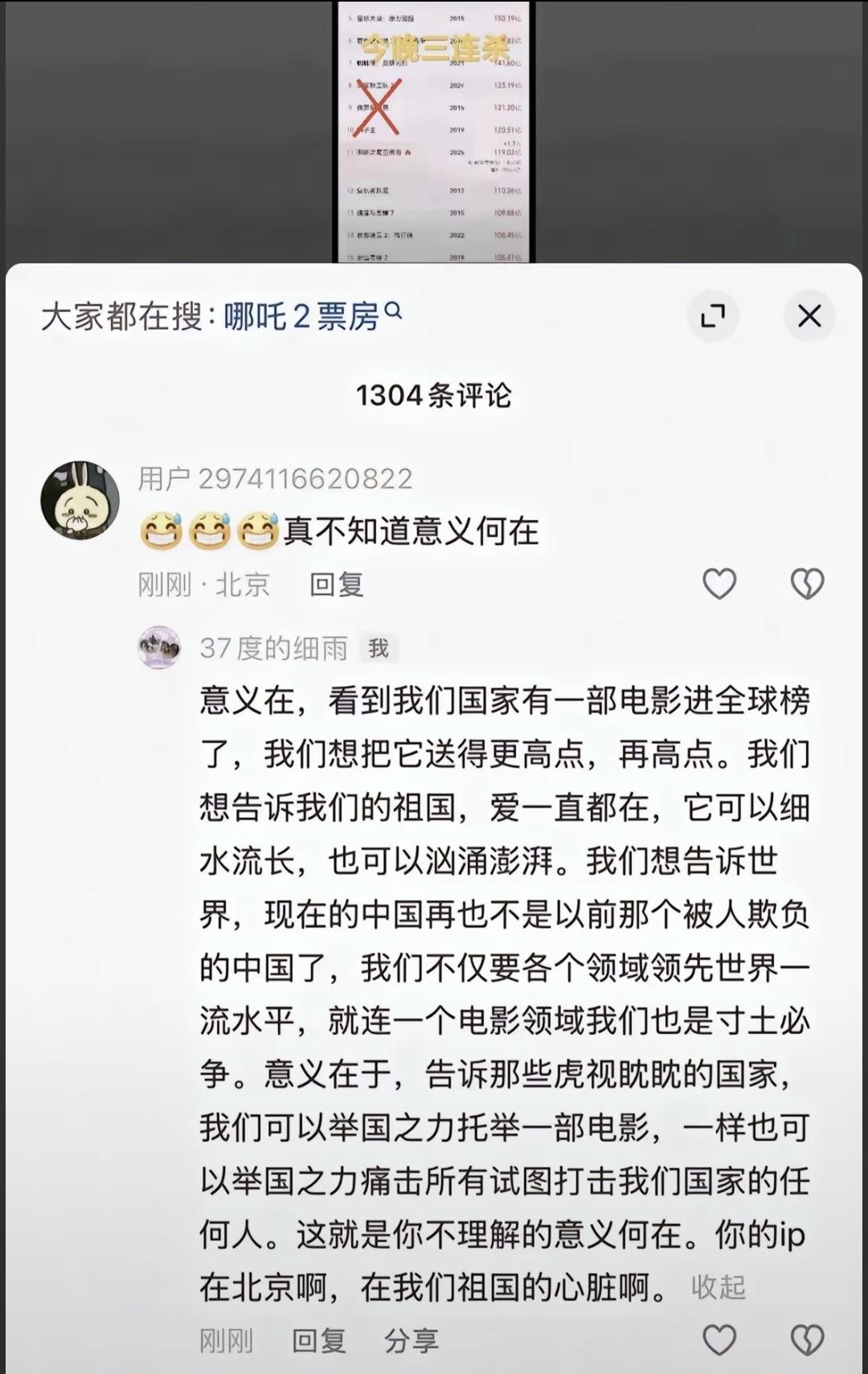 当然,也有网友调侃:“这下压力给到《哪吒3》了,续集要是拍不好,导演可得小心被观众‘寄刀片’!”不过话说回来,国产动漫能有今天的成绩,真的让人既骄傲又感动。你看过《哪吒2》了吗?觉得怎么样?快来评论区聊聊你的观后感吧!