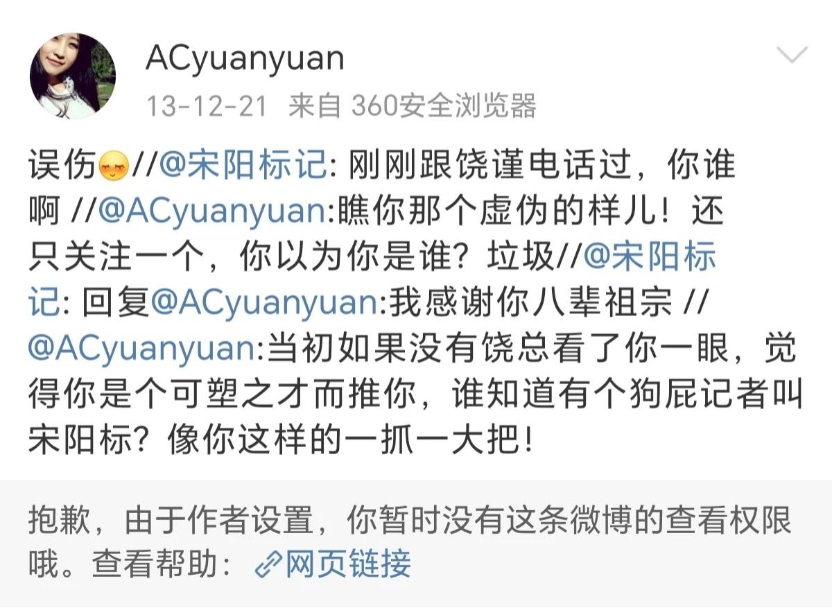 ACyuanyuan:当初如果没有饶总看了你一眼,觉得你是个可塑之才而推你,谁知道有个狗屁记者叫宋阳标?像你这样的一抓一大把!