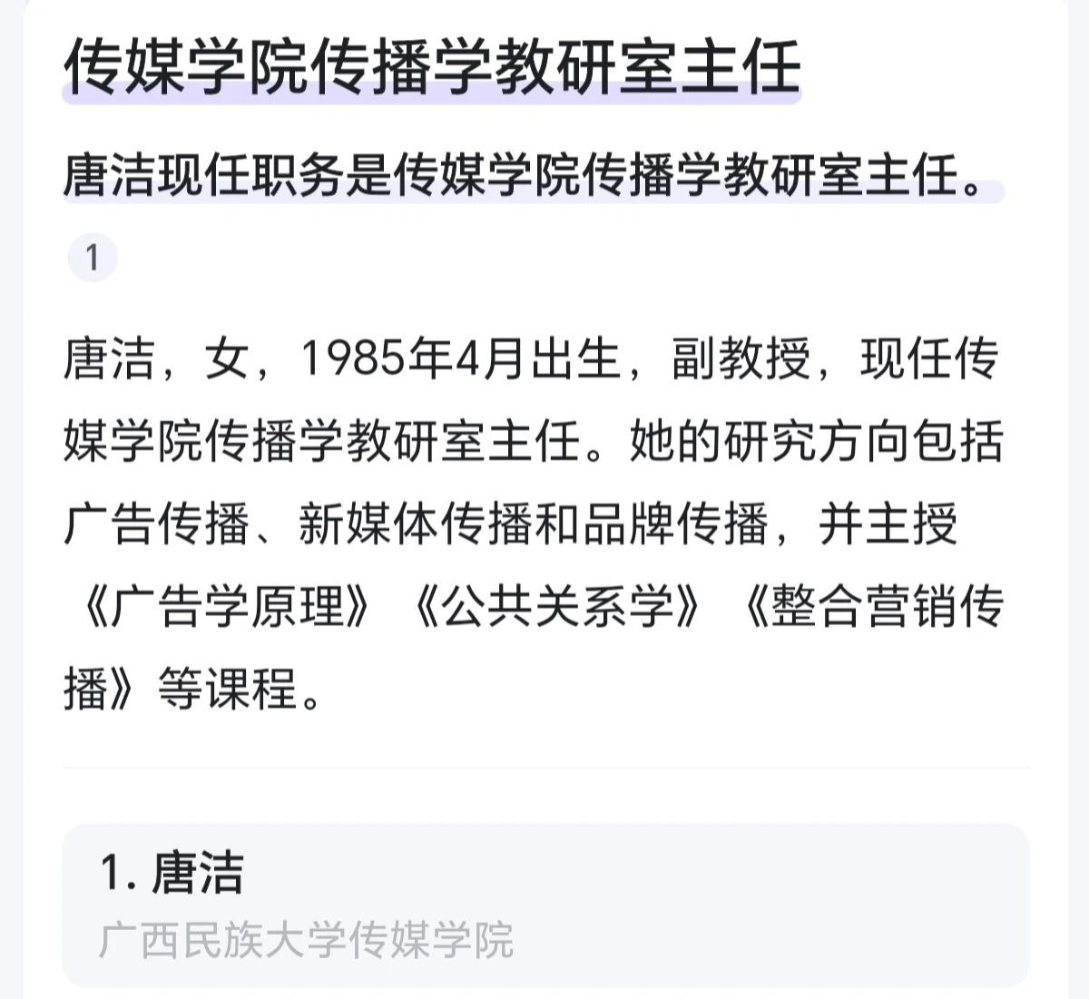 而另一个“叛徒”唐洁,很可能是广西民族大学传媒学院教研室主任唐洁!