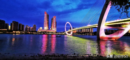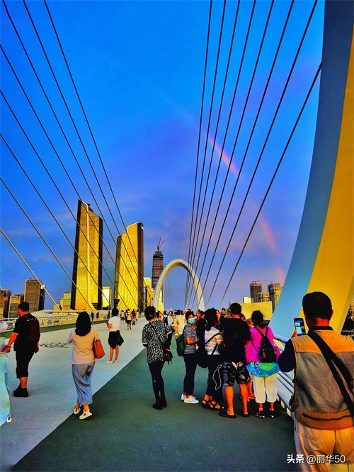 夜幕降临,亦梦亦幻的霓虹灯把步行桥变成了一个美轮美奂的童话世界。