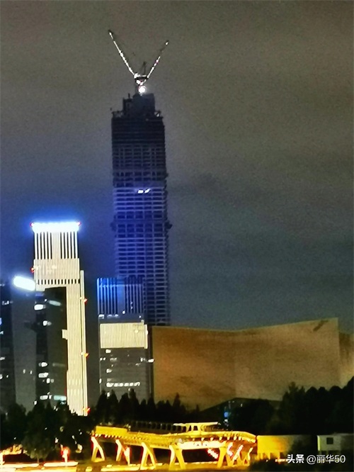 边走边摄,深感“观光桥”这名儿不是白起的:桥西是葱茏田园式的江心洲,桥东则是万家灯火的南京主城区,那两栋高耸入云的保利大剧院的双子星建筑,被闪烁的霓虹灯整体履盖,滚动播放着各色广告,富丽堂皇,气势恢宏,彰显着城市的繁华和商业氛围。