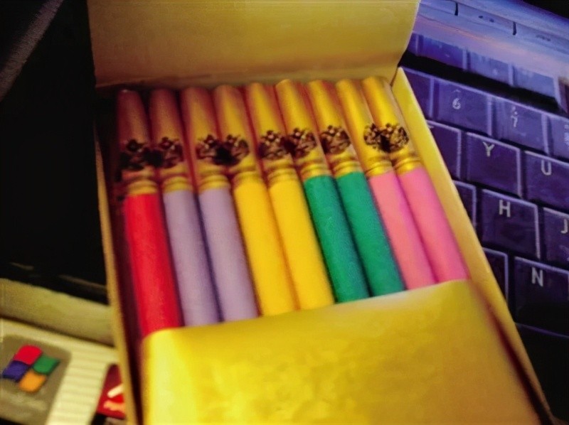 4、彩虹烟:外形和平日能购买到的香烟很像,混杂的毒品成分不明,但对人体危害极大。在吸食过程中会产生特殊颜色的烟雾,所以称之为彩虹烟。