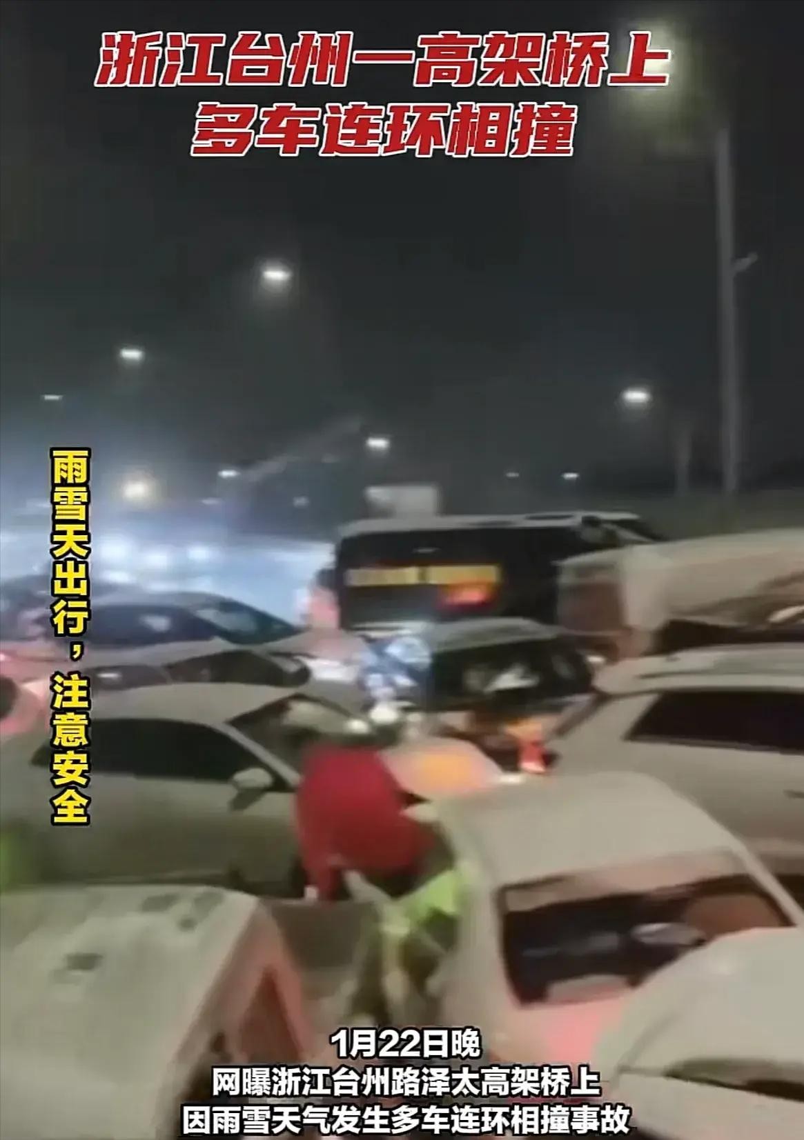 一片银装素裹的浙江省台州路泽太高架桥上,100多辆车在寒冷的冰天雪地中密密麻麻地拥堵在一起,横七竖八地互相撞击着,一片混乱。这场骇人听闻的大规模追尾车祸,在严寒的冬日,给这座桥上来来往往的车辆和司机带来了深深的恐惧。