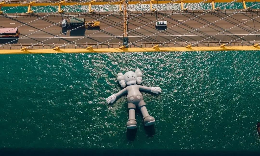 KAWS香港站,漂浮在香港维多利亚港的巨型KAWS作品《KAWS:HOLIDAY》 这个长达37米的公仔吸引了来自世界各地的“粉丝”纷纷打卡。