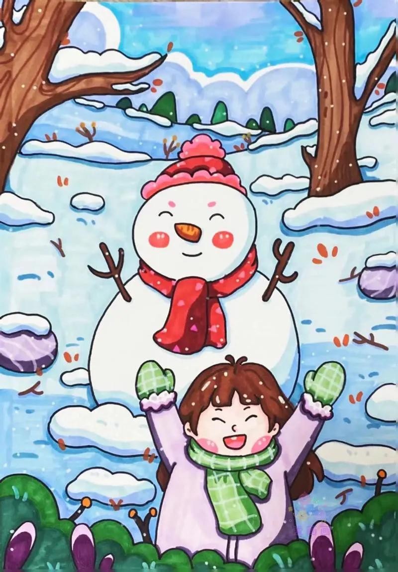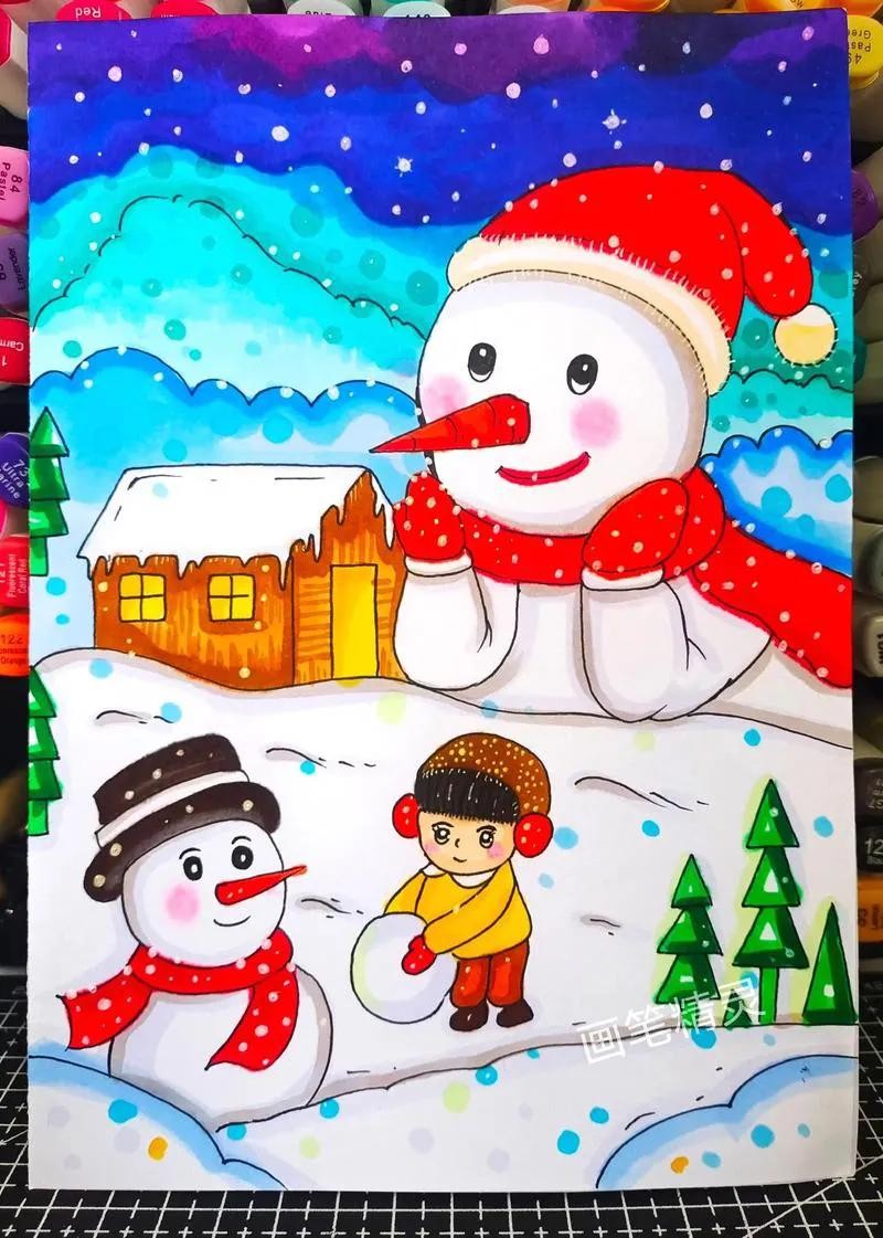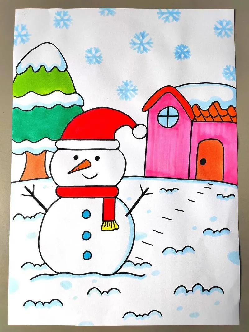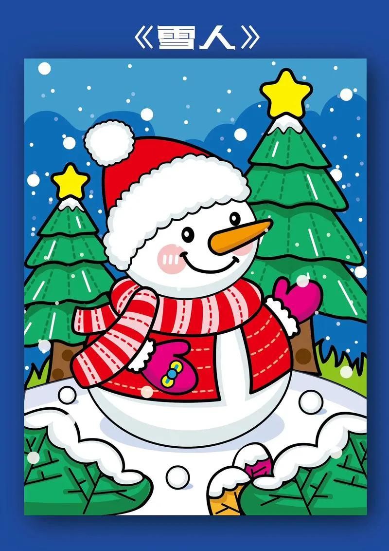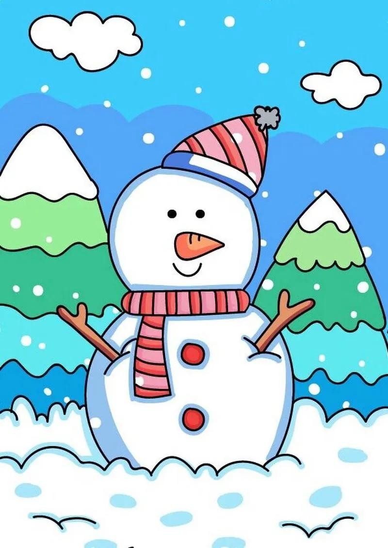 精选50张冬季雪人主题绘画