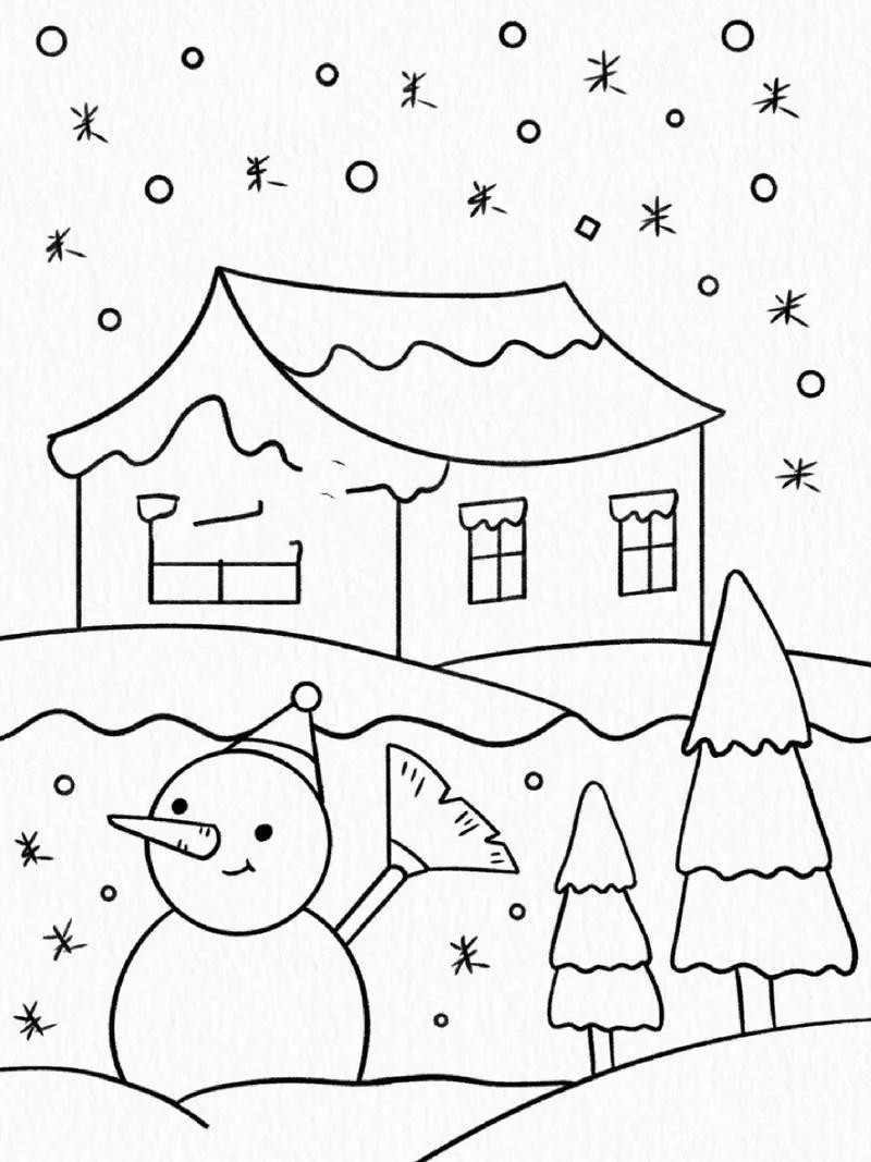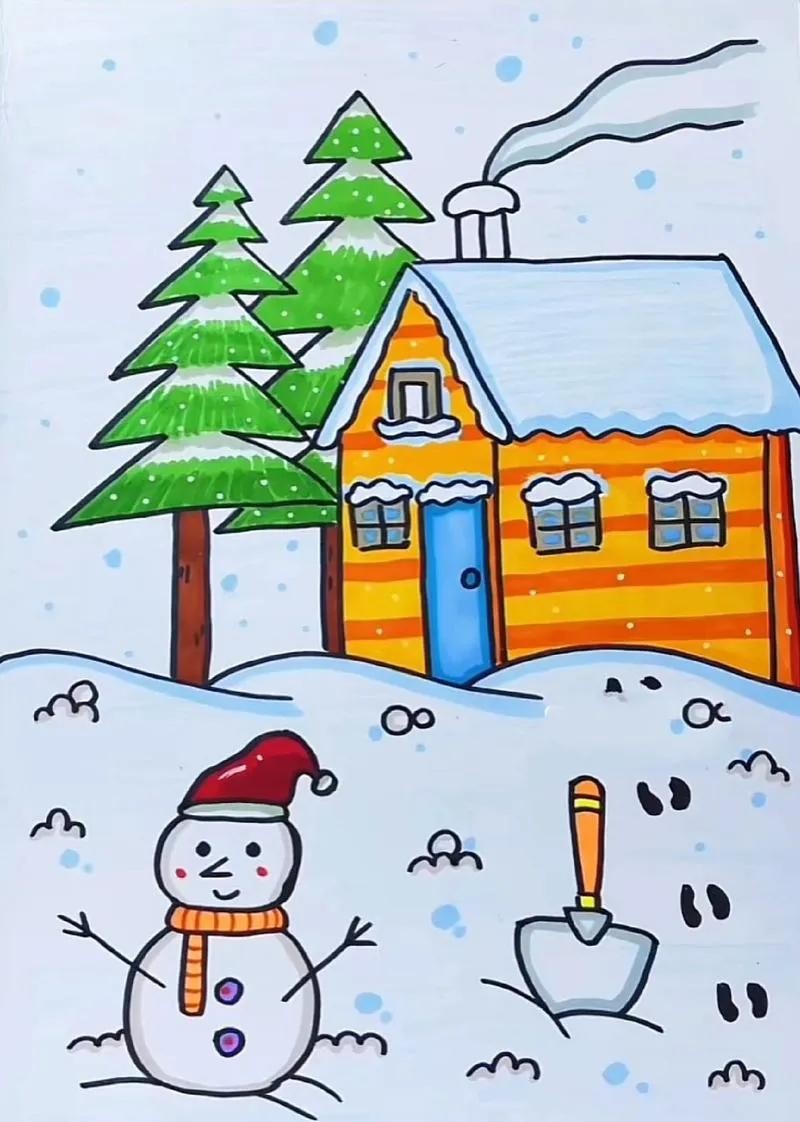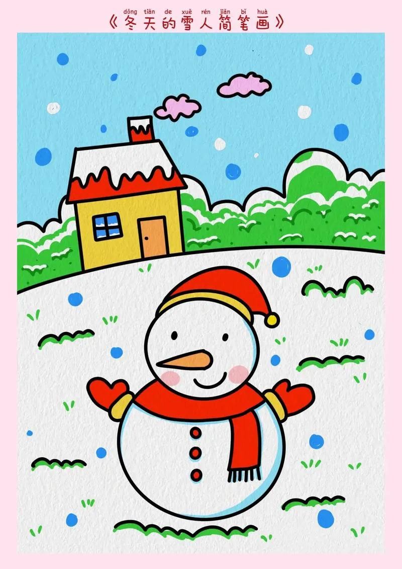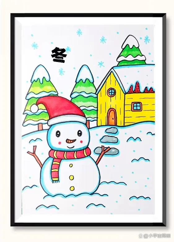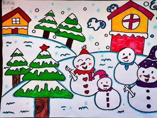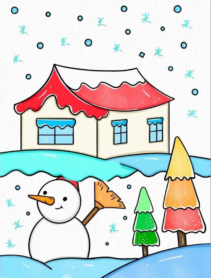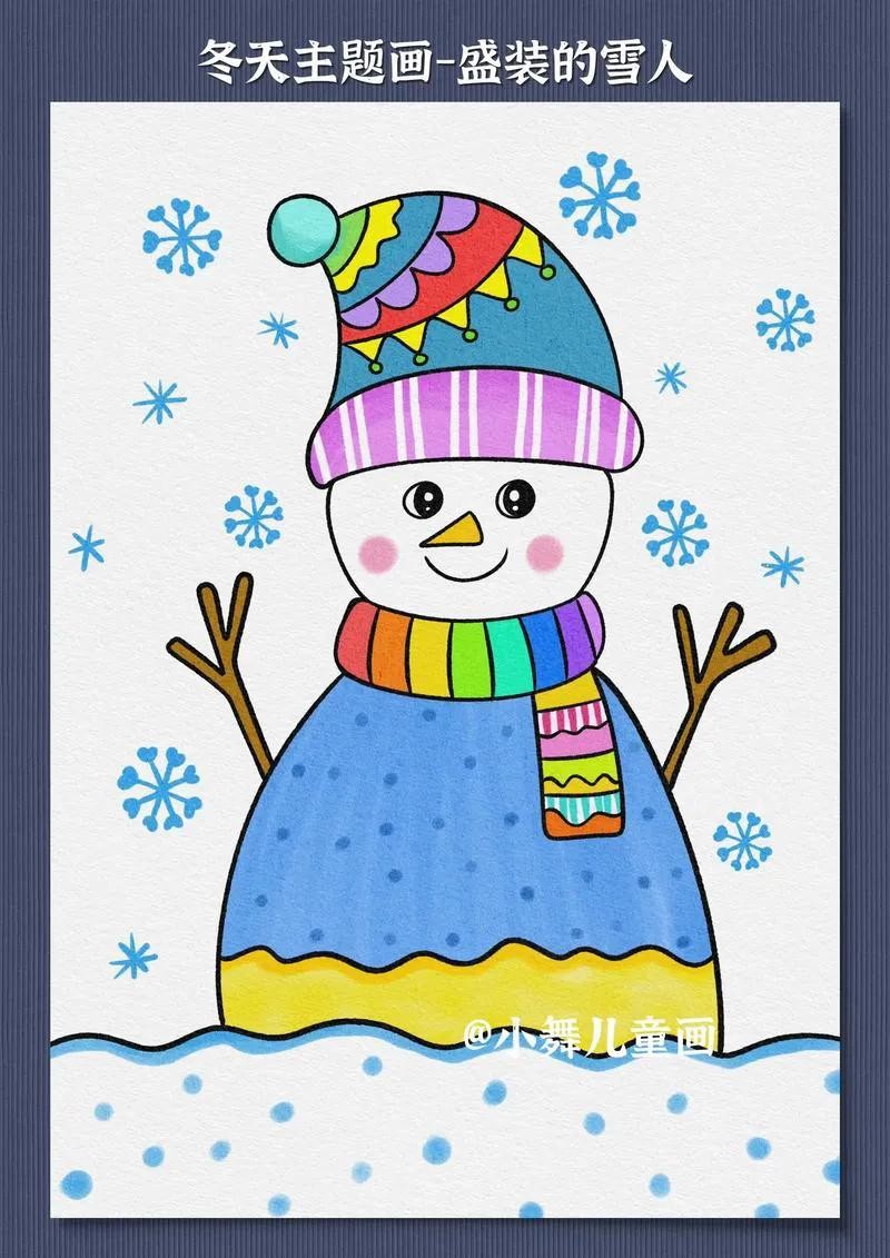 精选50张冬季雪人主题绘画