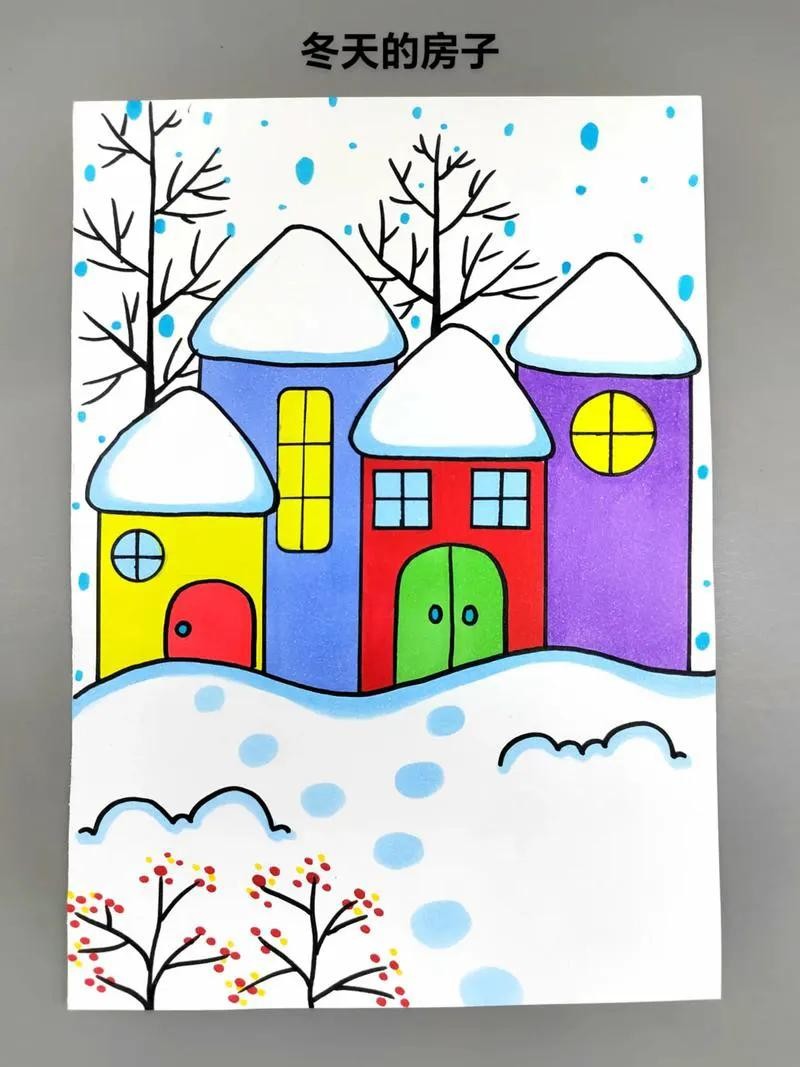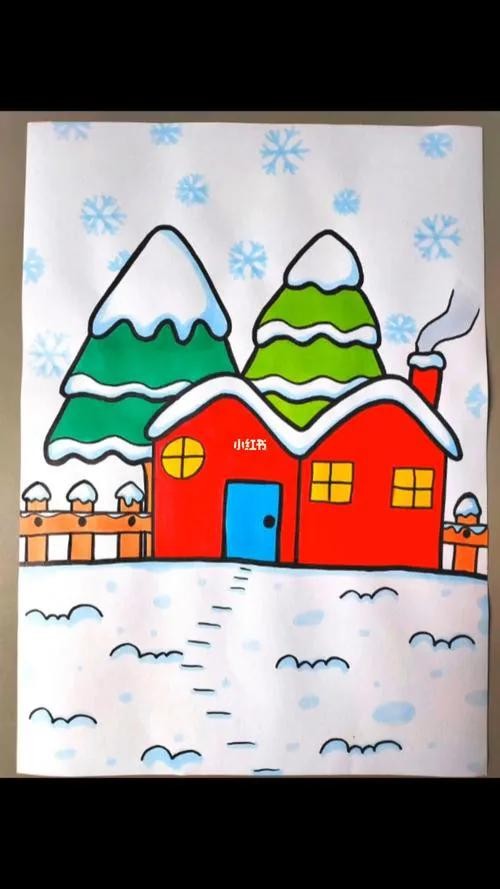 2. 雪人部分,用白色水彩或白色丙烯颜料将雪人的身体涂满,使其看起来洁白如雪。帽子可以涂成红色,围巾涂成彩色条纹状,胡萝卜鼻子涂成橙色,树枝手臂涂成棕色。雪花用银色的闪光笔点缀,增强其晶莹剔透的效果。