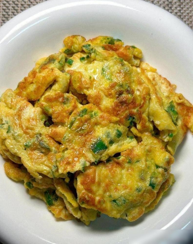 青椒加鸡蛋做成鸡蛋饼,不仅简单,而且全面又营养丰富,蛋白质和纤维素都有,在加上一点盐调味,就能上桌开吃了。